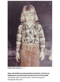 “Never. On the contrary! Especially when I was just an operator. I thought it was funny to announce it. The only tricky thing is that people are so curious. As soon as I say what work I do, we often don’t talk about anything else, while I also like to talk about other things. Maybe it also makes a difference that I don’t have children, in that respect I’m invulnerable. I can be very open, but when it is whispered in the schoolyard that a mother has an escort agency, it might be more difficult. I must also honestly say that people find it more acceptable because it’s high class escort. They find it completely different for one reason or the other.”
